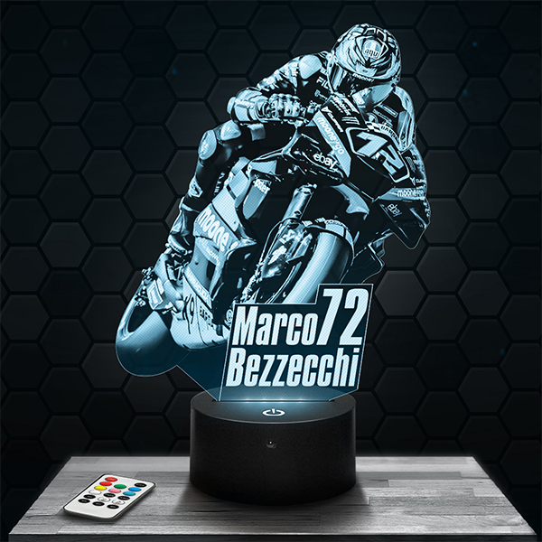 Illuminez votre espace avec notre lampe 3D représentant Marco Bezzecchi, un pilote de MotoGP. La plaque en verre acrylique gravée avec précision capture les détails de ce compétiteur, rendant hommage à son rôle dans les courses de moto. Son socle LED RVB tactile permet de choisir parmi 7 couleurs éclatantes, créant une ambiance dynamique et inspirante. Idéale pour le salon, la chambre ou le bureau, cette lampe deviendra le point focal de votre décoration.