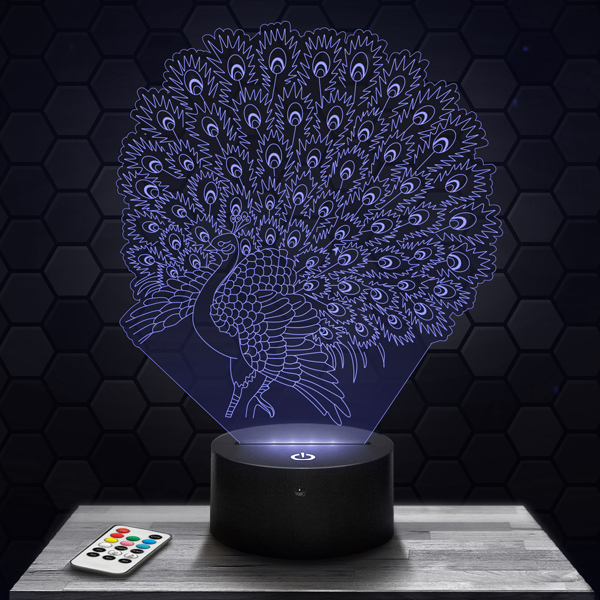 Apportez une touche de majesté à votre intérieur avec cette lampe 3D Paon,