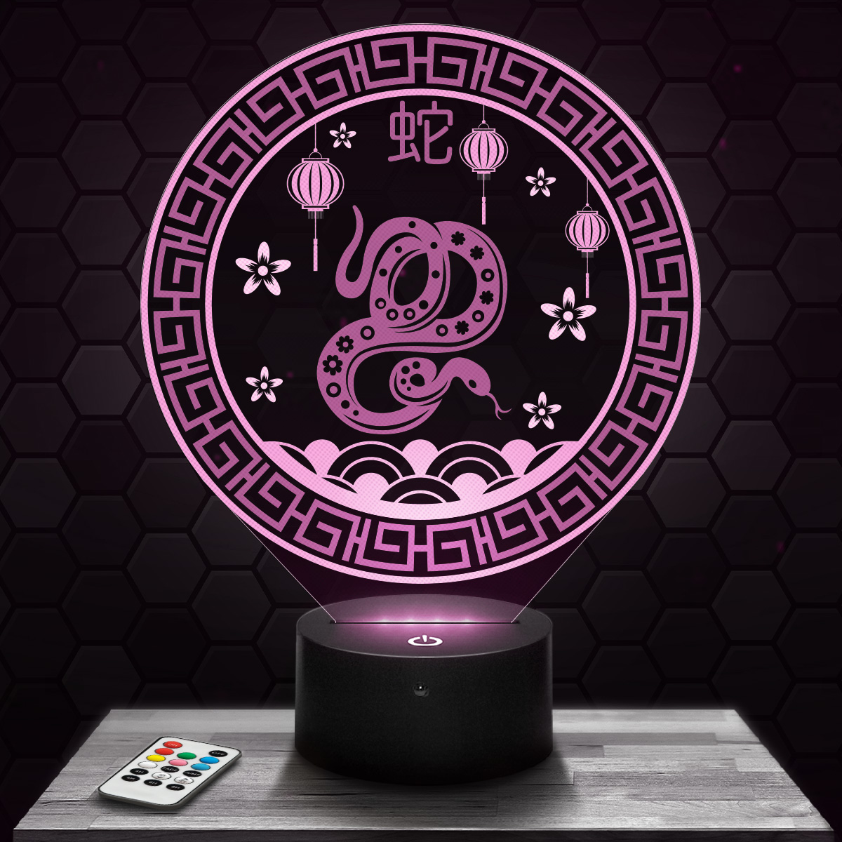 Cette lampe du signe astrologique chinois du Serpent est l’idée cadeau  parfaite pour un anniversaire, Noël ou toute autre occasion spéciale. Son  design élégant et moderne en fait un objet de décoration à part entière. Avec  notre télécommande incluse, vous pourrez facilement changer la couleur de la  lampe selon vos envies. De plus, notre catalogue propose plus de 500 modèles  au choix, vous permettant de trouver la lampe qui correspond parfaitement à  vos goûts et à ceux de vos proches.