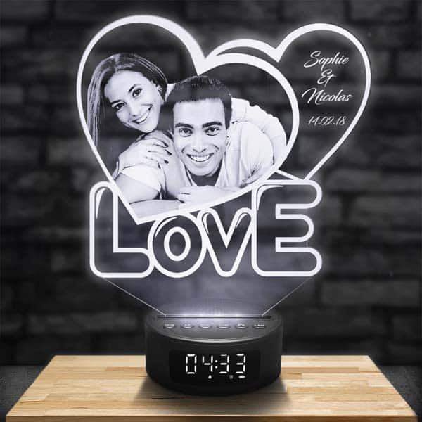 Lampe Personnalisée Cœur Love 2 Haut de gamme Réveil / Enceinte Bluetooth